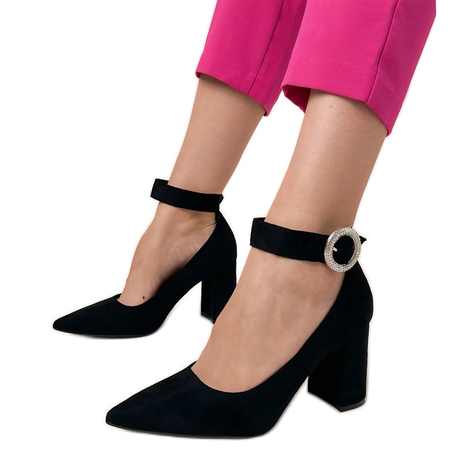 Pojedinosti: Crne pumpe na posta s kopčom i cirkonima crna