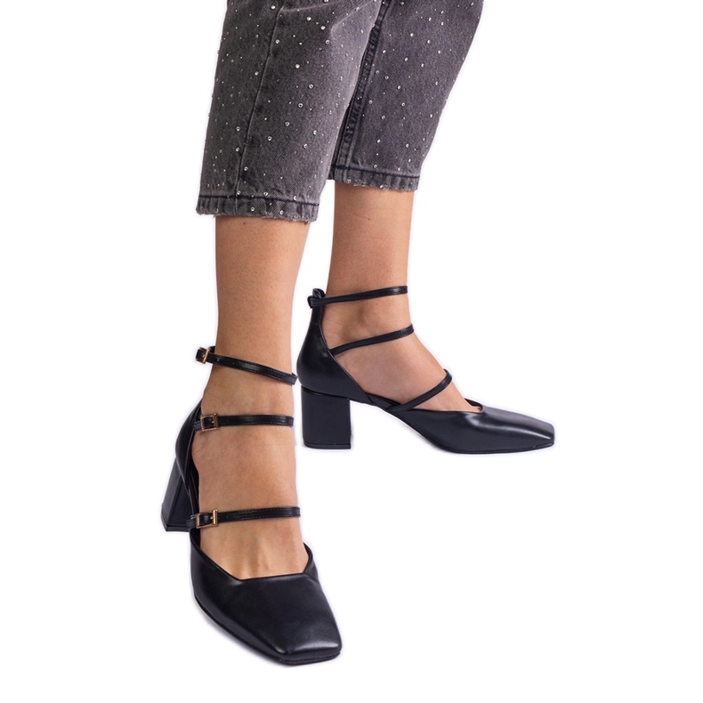 Pojedinosti: Crne pumpe na stupu s kopčama crna
