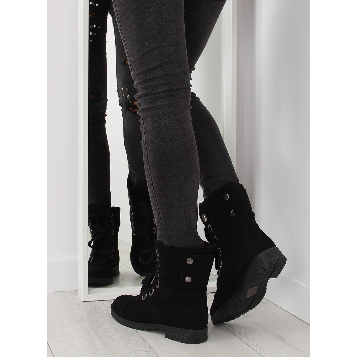Pojedinosti: Crne radne čizme s vezanjem 8901 Crna