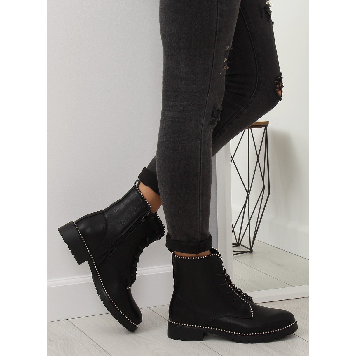 Ovo je savršen izbor za žene koje žele spojiti modu i udobnost - crne Worky 2577 crne gležnjače. Ove gležnjače na vezanje izdvajaju se od ostalih zahvaljujući modernim detaljima, uključujući moderan završetak sa srebrnim kuglicama koje im daju jedinstven karakter.