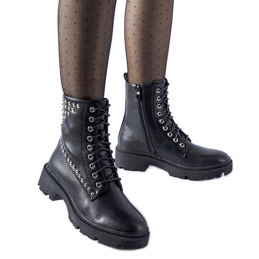 Crne radničke čizme ukrašene Bobbitt nitnama crna