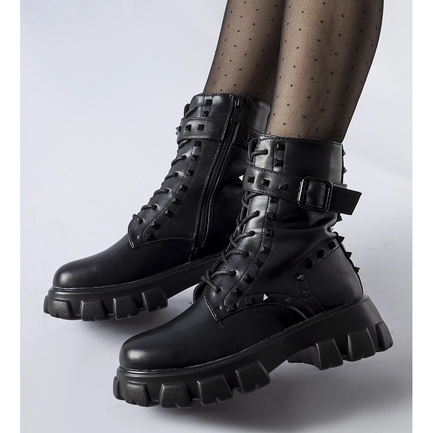 Crne radničke čizme ukrašene Chamberlain nitnama crna