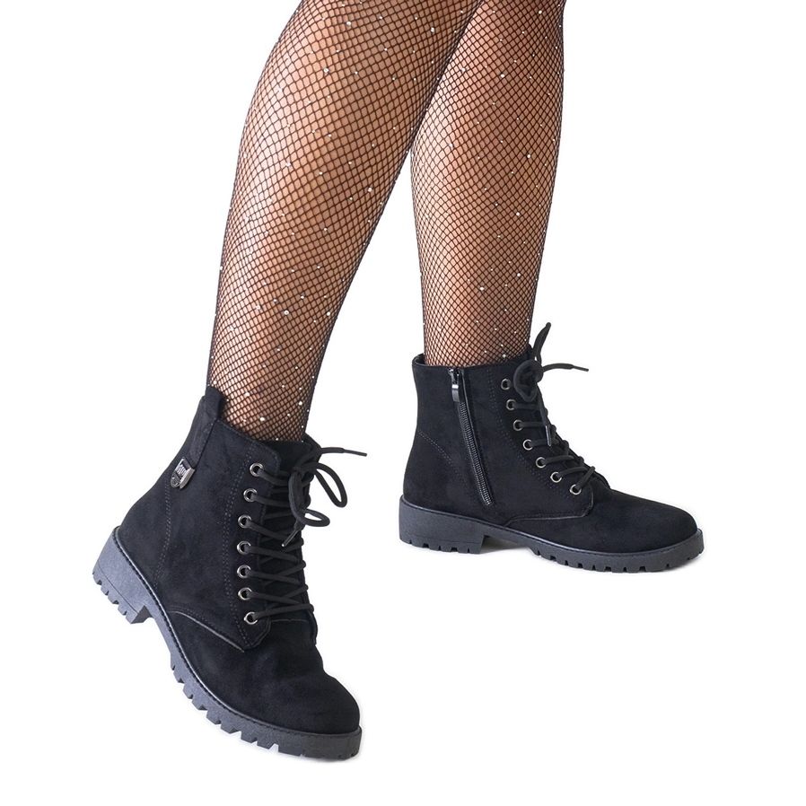Crne radničke gležnjače od eko brušene kože na platformi Madana crna