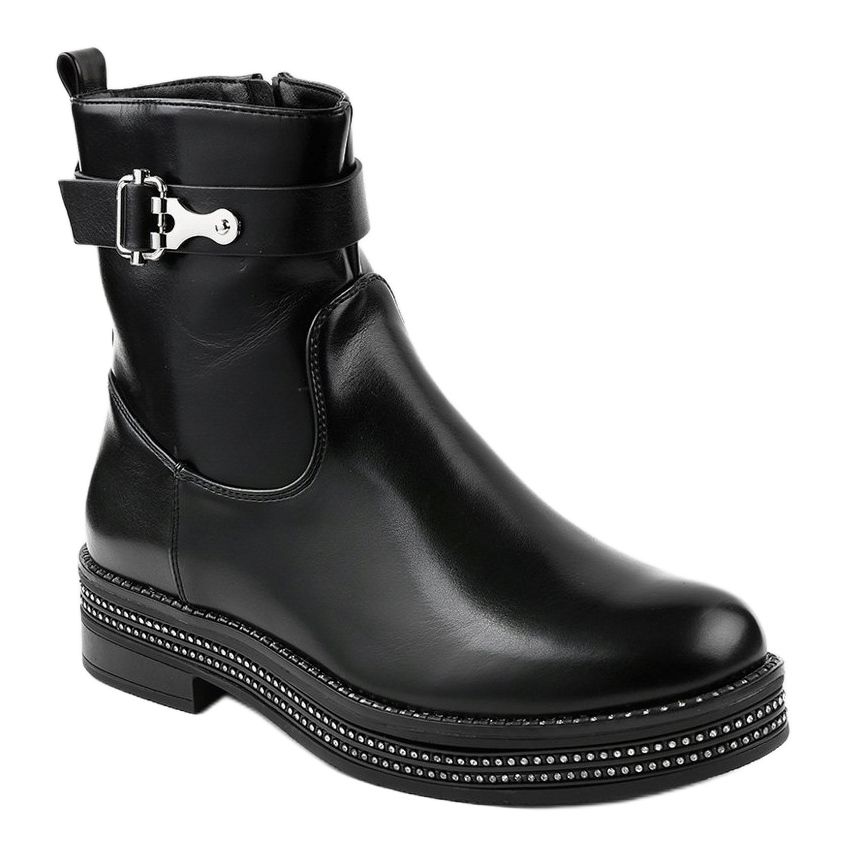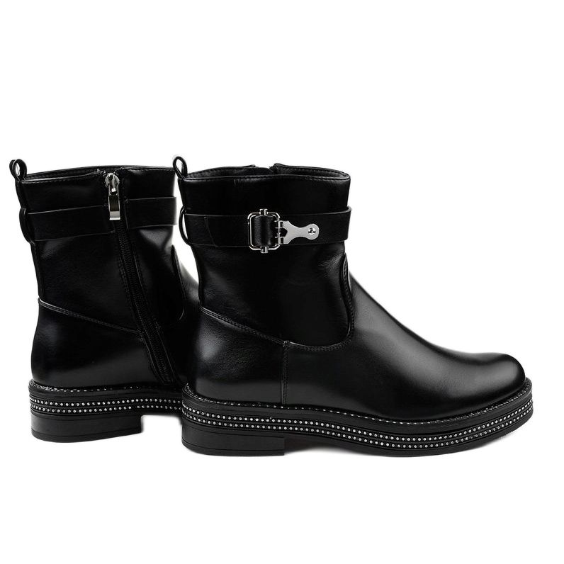 Pojedinosti: Crne ravne čizme s dijamantima C-68 crna