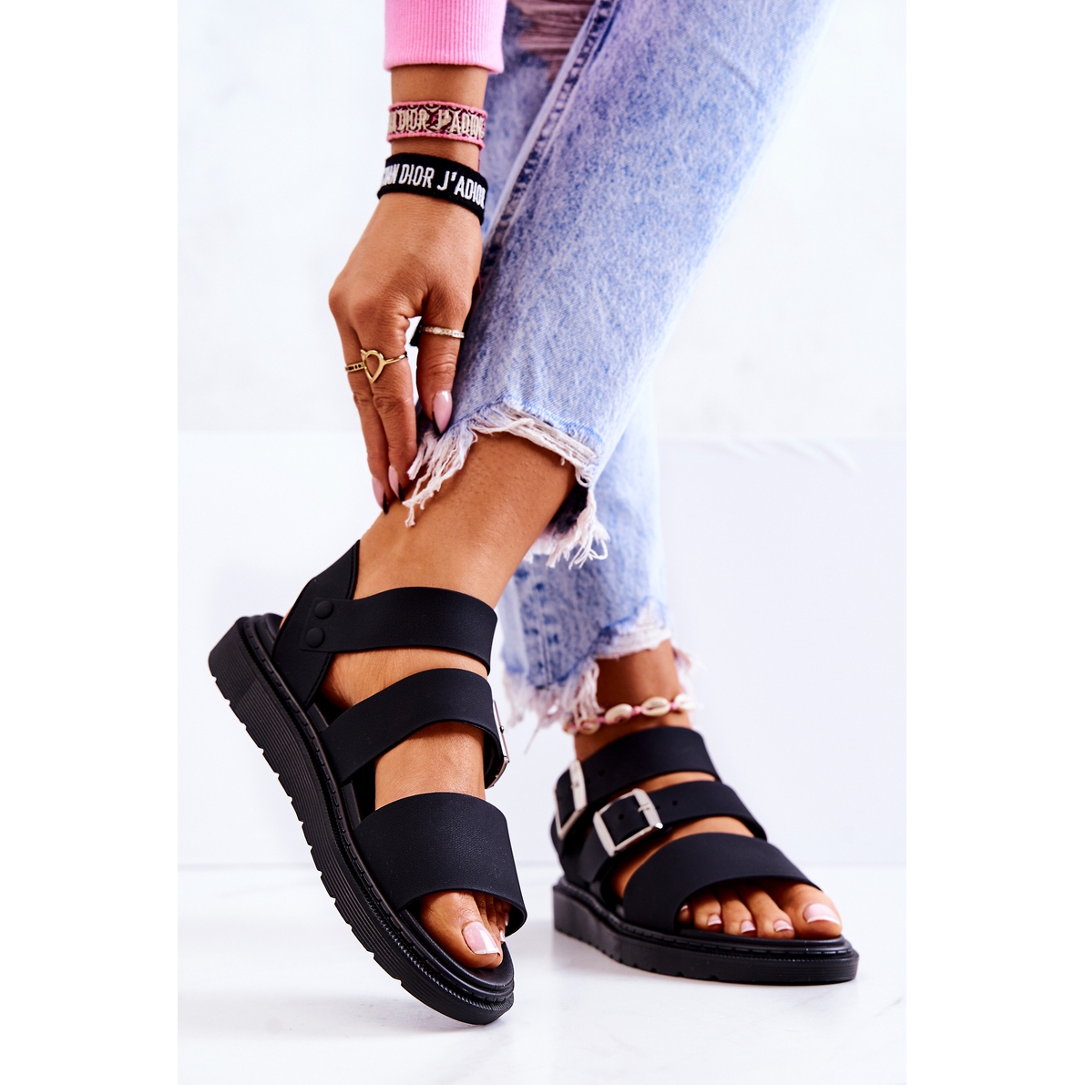 Sandale imaju platformu visine 3,5 cm, koja ne samo da dodaje stilski izgled, već i štiti vaša stopala od neravnog tla, što je iznimno važno tijekom ljetnih šetnji. Gornja visina od 7 cm dodaje eleganciju, a klasična crna boja pristaje uz mnoge ljetne stilove.