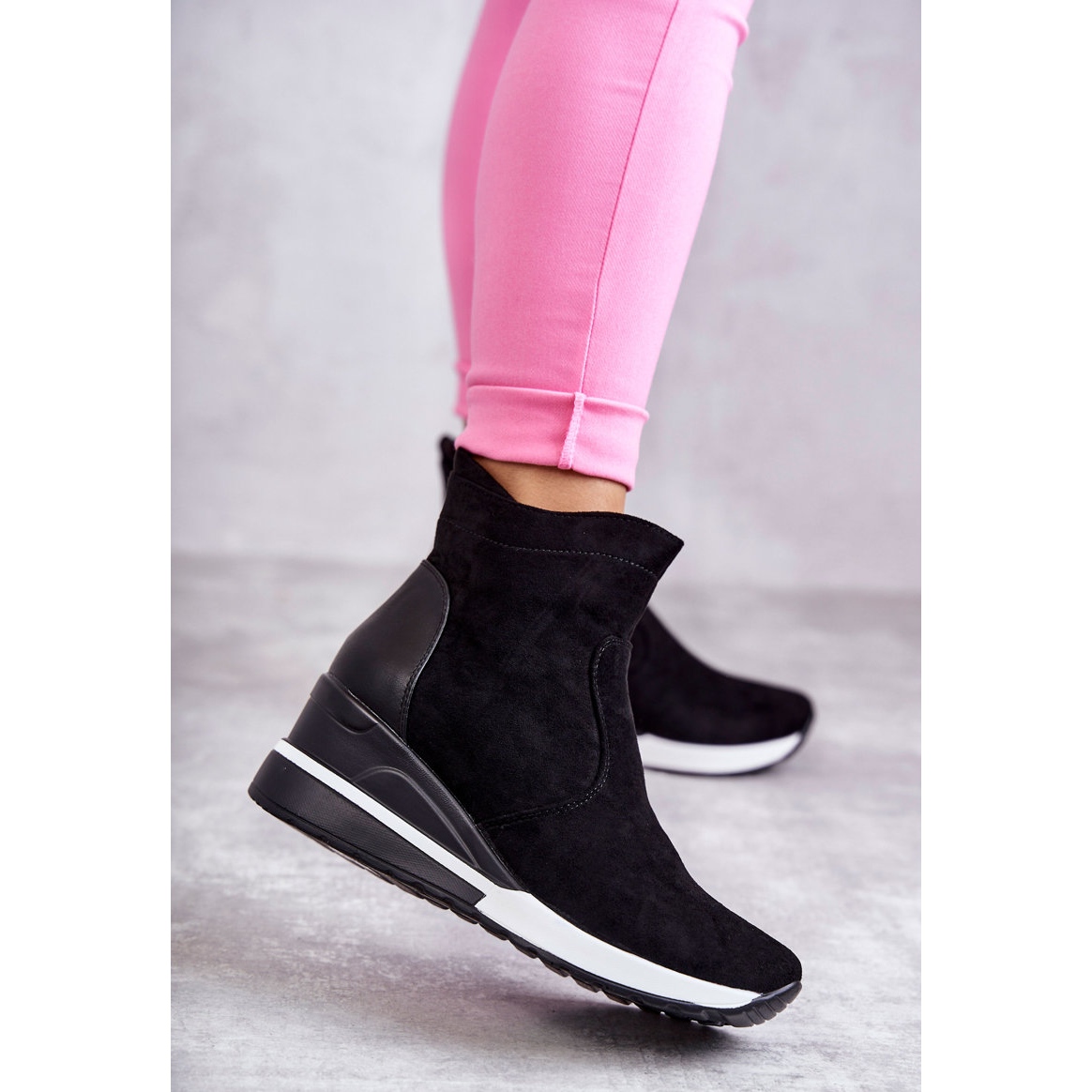 Elegantne tenisice na klinu Vincez Rita kombinacija su urbanog stila i udobnosti. Izrađena od ekološke kože s teksturom od antilop, sa bočnom bravom koja olakšava uspostavljanje i ukočenu stabilizaciju za bolju stabilizaciju. Unutrašnjost izolirana pokrivačem obuće čini da model djeluje izvrsno u hladnijim danima. Klasične, okrugli nožni prst i ujednačene crne boje daju cipelama univerzalni karakter - odgovaraju i svakodnevnim i elegantnim stilizacijama.