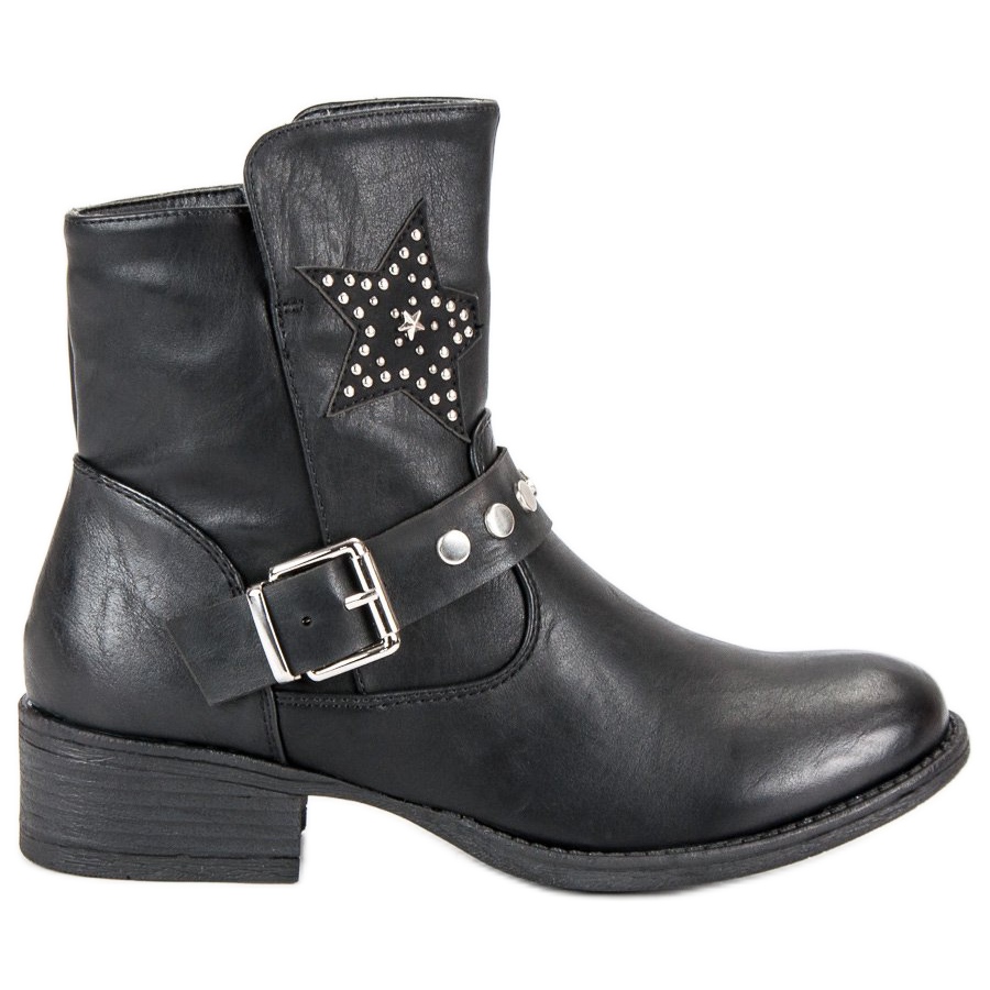 Otkrijte svoju rock stranu uz naše jedinstvene crne gležnjače koje će postati nezamjenjiv element vašeg ormara. Stil ovih cipela privlači pažnju - elegantna ukrasna kopča i suptilna zvijezda od perli daju im jedinstven karakter. Ove čizme savršeno pristaju uz rock stajlinge, ali pristaju i uz svakodnevne, ležerne kombinacije.