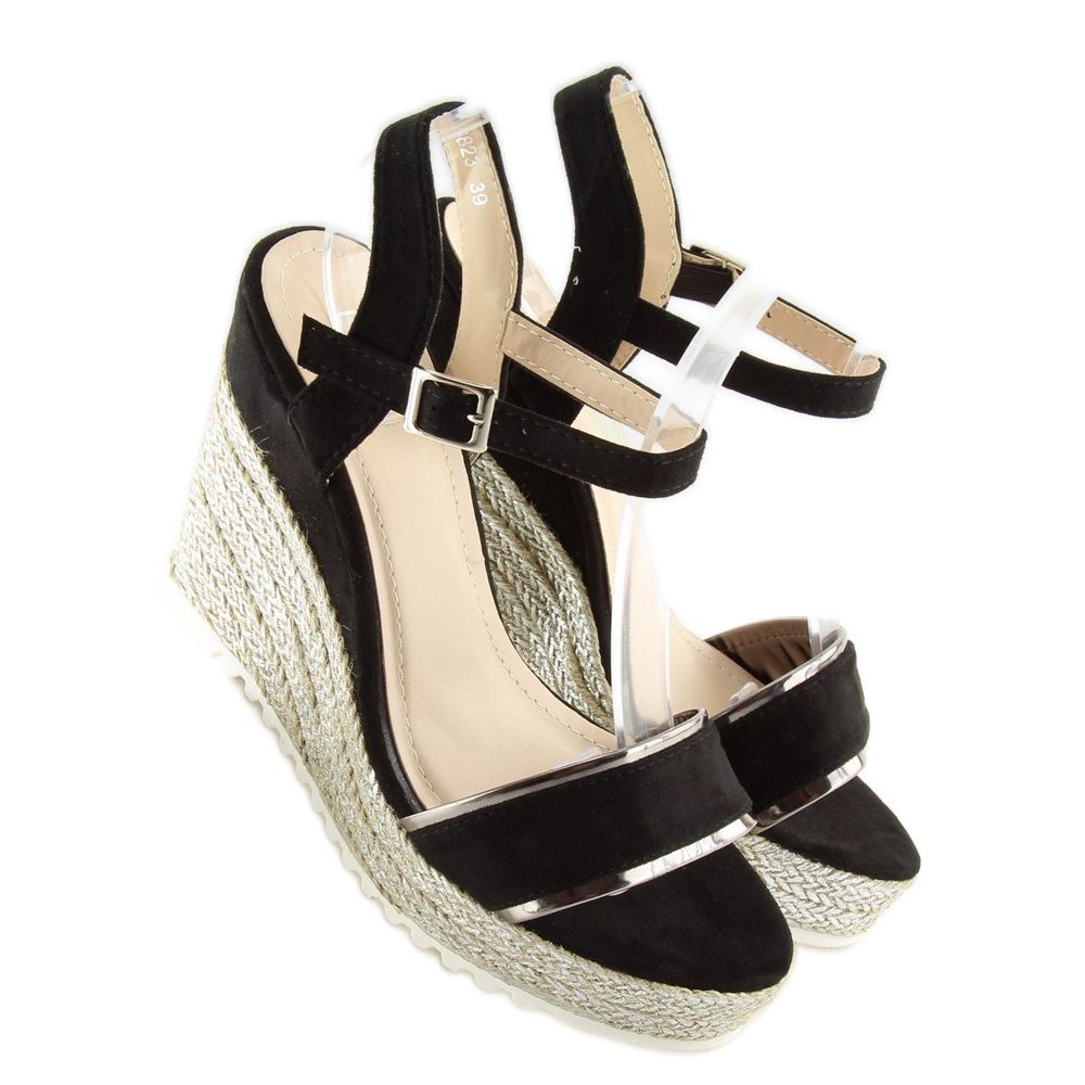 Pojedinosti: Crne sandale espadrile na klin crne 6823 Crna