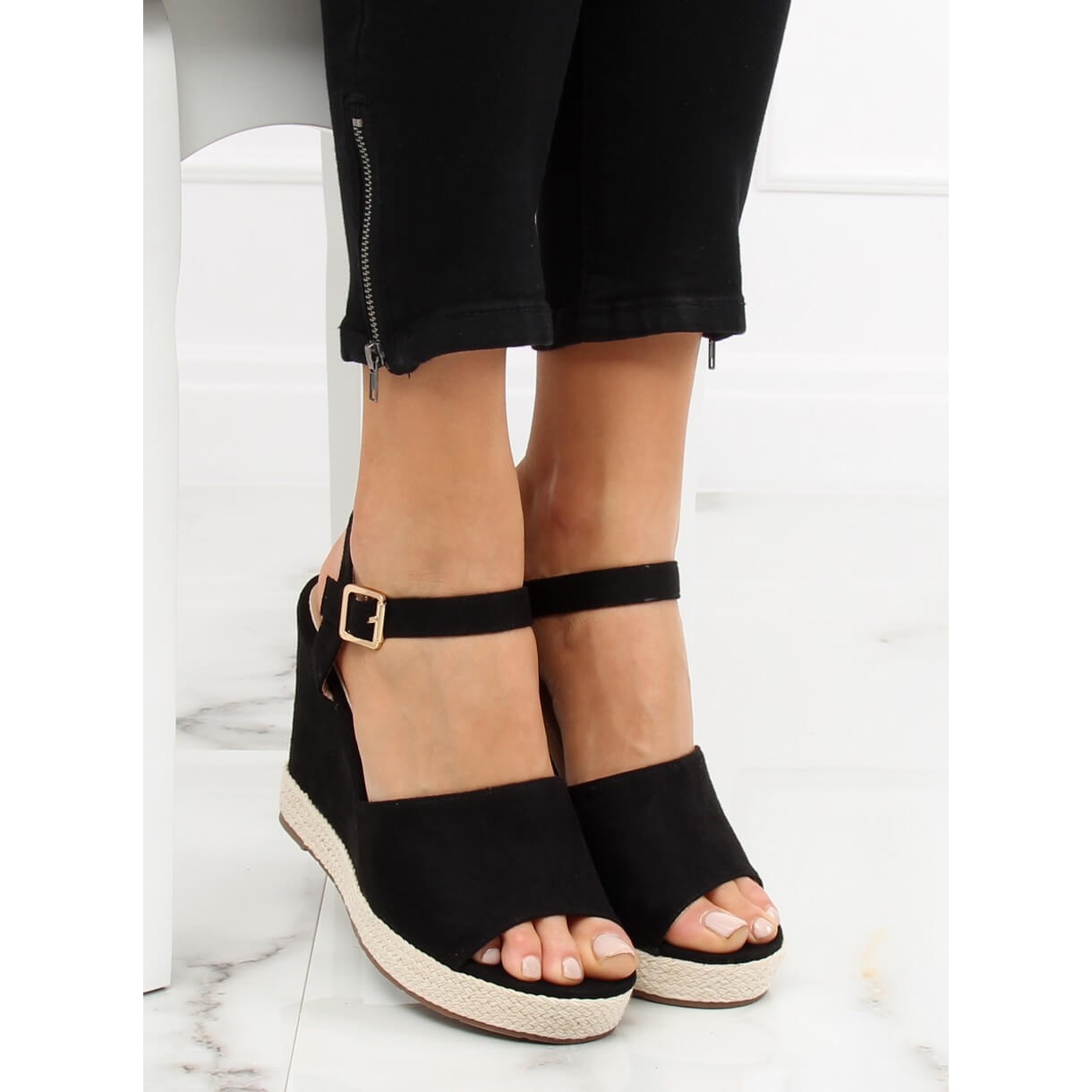 Pojedinosti: Crne sandale na klin crne FD-5M14 crne crna