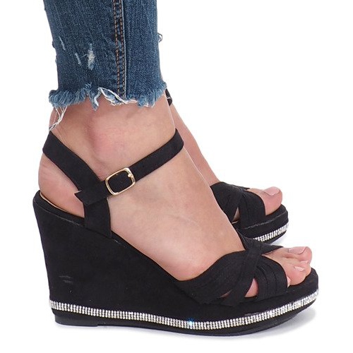 Wedge visine 10 cm i visine platforme 2,5 cm čine skladnu cjelinu koja optički izdužuje noge, a pritom osigurava udobnost na svakom koraku. Dodatno, kamenčići i kamenčići dodaju malo glamura, savršeno se uklapajući u aktualne trendove.