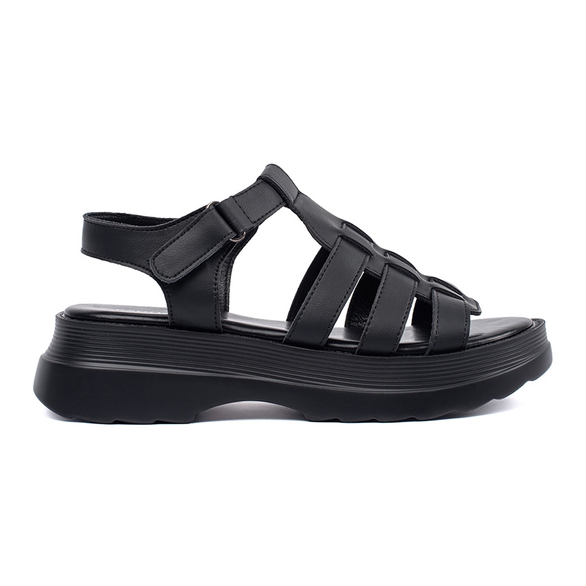 Pričvršćivanjem čičak, stavljanje obuće je brzo i jednostavno, a dodatno vam omogućuje da savršeno uskladite sandale s oblikom stopala. Klasična crna boja čini da se ovaj model savršeno miješa s raznim stilizacijama - od ležernijih do elegantnijih.