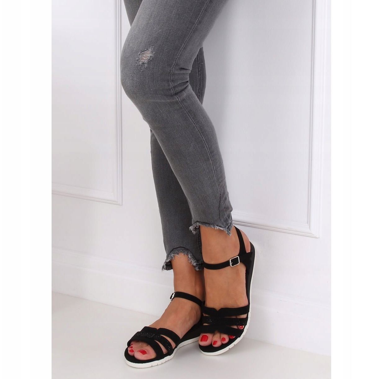 Crne sandale na niskoj klinnoj peti NS113P Crna