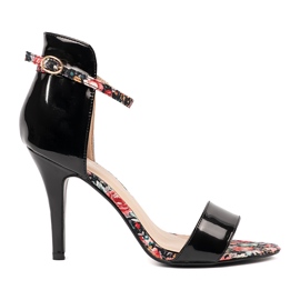 Shelvt Shelvt Crne sandale na visokoj peti s umetcima Cavats crno