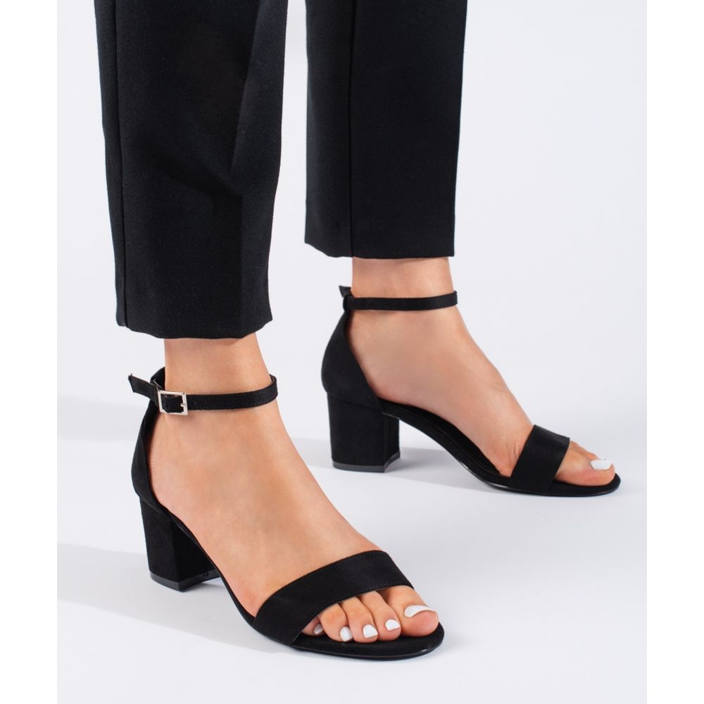 Sandale su ugrađene na stabilnu petu visoku petu 6 cm, što osigurava udobnost nošenja čak i dugo vremena. Glatki plastični potplat nudi dobru adheziju, a klasična crna boja čini ih kombiniranim s raznim stilizacijama.
