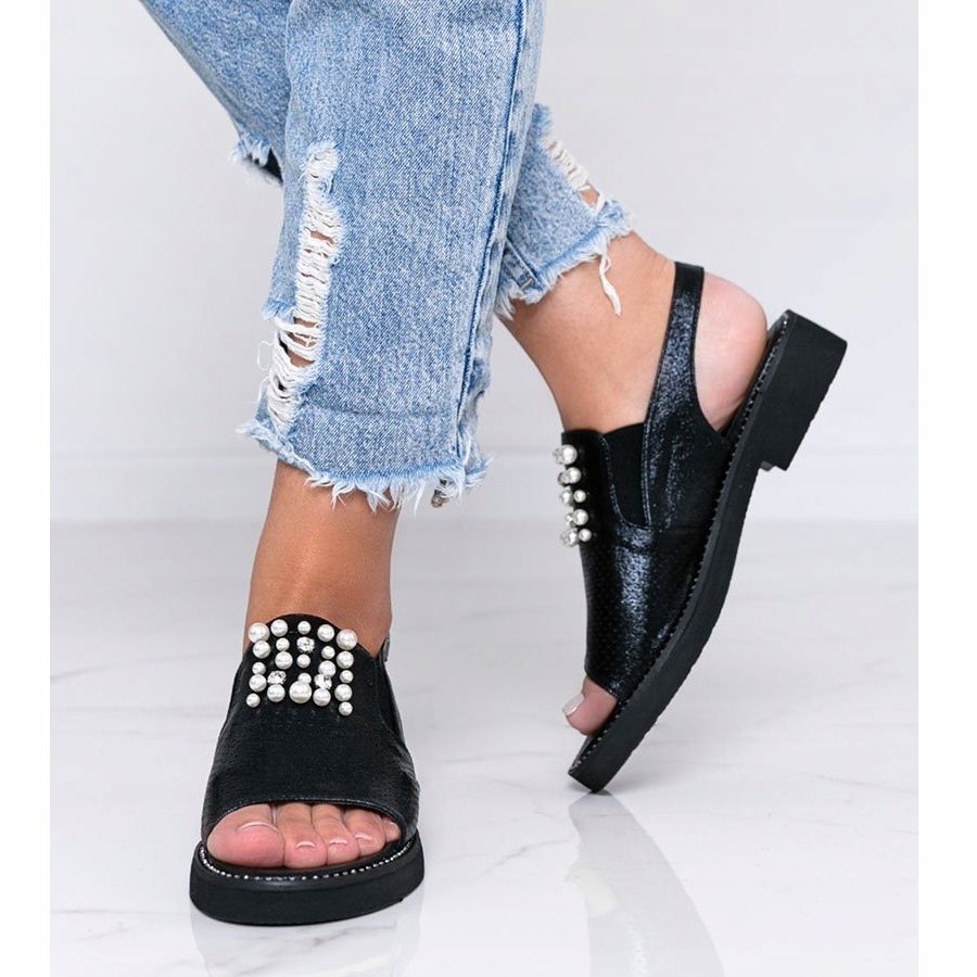 Pojedinosti: Crne sandale s biserima Like A Woman crna