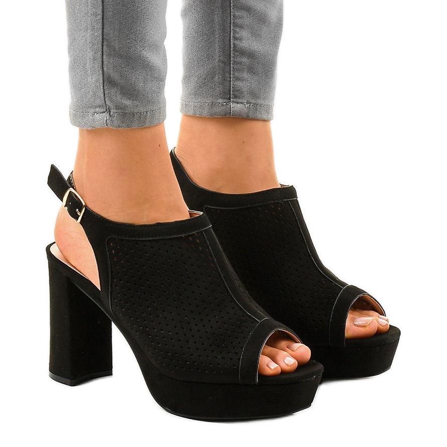 Pojedinosti: Crne sandale s petom na otvorenom 9R82 crna