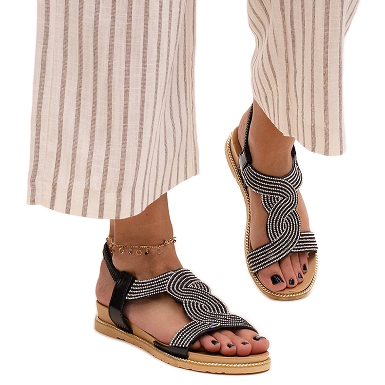 Pojedinosti: Crne sandale ukrašene Gairsa cirkonima crna