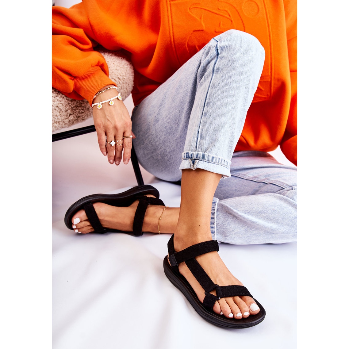 PM1 Ženske sportske sandale od brušene kože Black Harris lagana je i udobna obuća za tople dane. Njihov sportski izgled savršen je za odmor ili šetnju gradom. Ove sandale su crne boje, kopčaju se na čičak, što omogućava savršeno pristajanje uz nogu. Naramenice su izrađene od antilop ekološke kože koja im daje elegantan izgled. Potplat od gumenog materijala osigurava udobnost nošenja. Ovaj model ima delikatnu platformu visine 2,5 cm, koja će osigurati udobnost tijekom šetnje. Sandale nemaju kapicu, a uložak je od plastike.