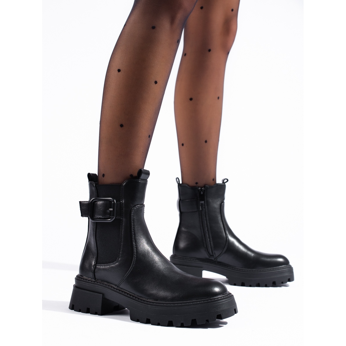 Klasični crni chelovet chelseats bezvremenski su model gležnja koji će raditi kako u urbanim stilu, tako i u više besplatnih setova. Izrađene od ekološke kože s izoliranom unutrašnjošću, pružaju udobnost i toplinu u hladnijim danima. ZIP pričvršćivač olakšava stavljanje, a stabilna, 5 cm peta s klinom od 2,5 cm daje optimalnu podršku i udobnost tijekom duljeg nošenja.