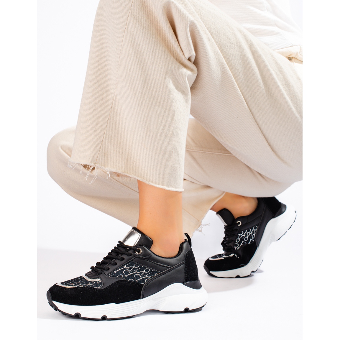Ženske crne Shelovet tenisice s debelim potplatom savršena su kombinacija udobnosti i profinjenog stila za žene koje cijene moderan izgled i svakodnevnu udobnost. Kombinacija tekstilnog materijala i visokokvalitetne imitacije kože stvara izdržljivu i atraktivnu teksturu cipela.