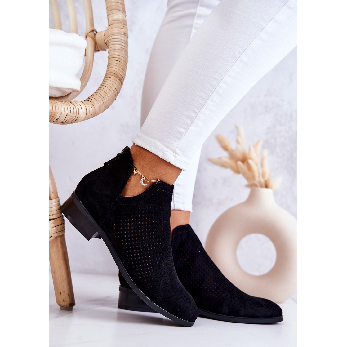 Otkrijte izvanredne Vinceza ažur gležnjače u crnoj boji koje će postati neodvojivi element vaše proljetne i ljetne garderobe. Izrađene od visokokvalitetnog eko antilop kože, ove elegantne gležnjače privlače pozornost ažurnim uzorkom koji im daje lakoću i plemenitost. Njihov univerzalni dizajn savršeno pristaje uz različite ženske stilove - kako elegantne tako i casual.