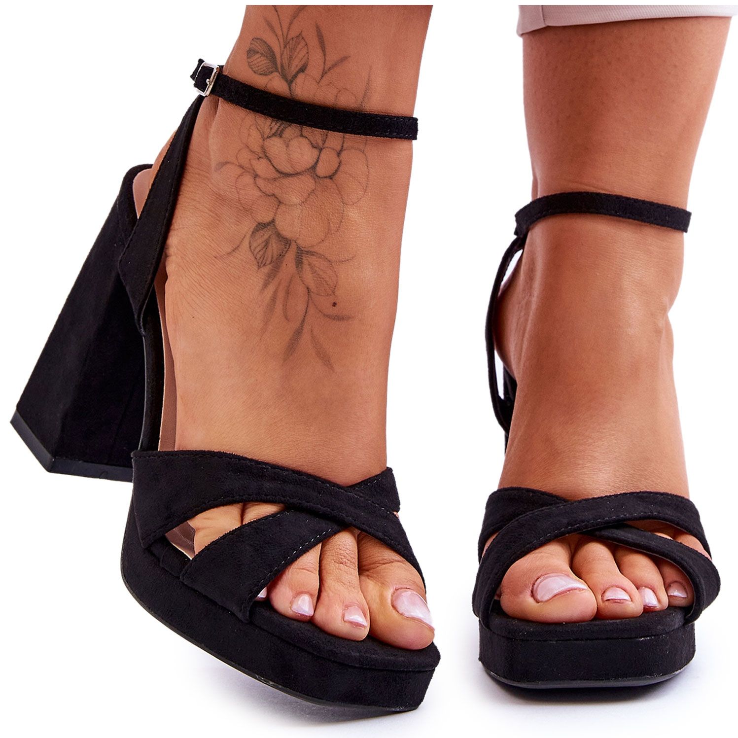 Klasične moćne sandale napravljene od ugodnih za dodir Eko-dijel je kombinacija elegancije i udobnosti. Model je postavljen na stabilnoj, kvadratnoj post 11 cm i platformi od 2 cm, zahvaljujući kojoj su optički vitki lik, održavajući udobnost nošenja. Podesivo pričvršćivanje kopča omogućuje vam da savršeno uskladite stopalo, dok ekološki kožni umetak pruža osjećaj mekoće na svakom koraku.
