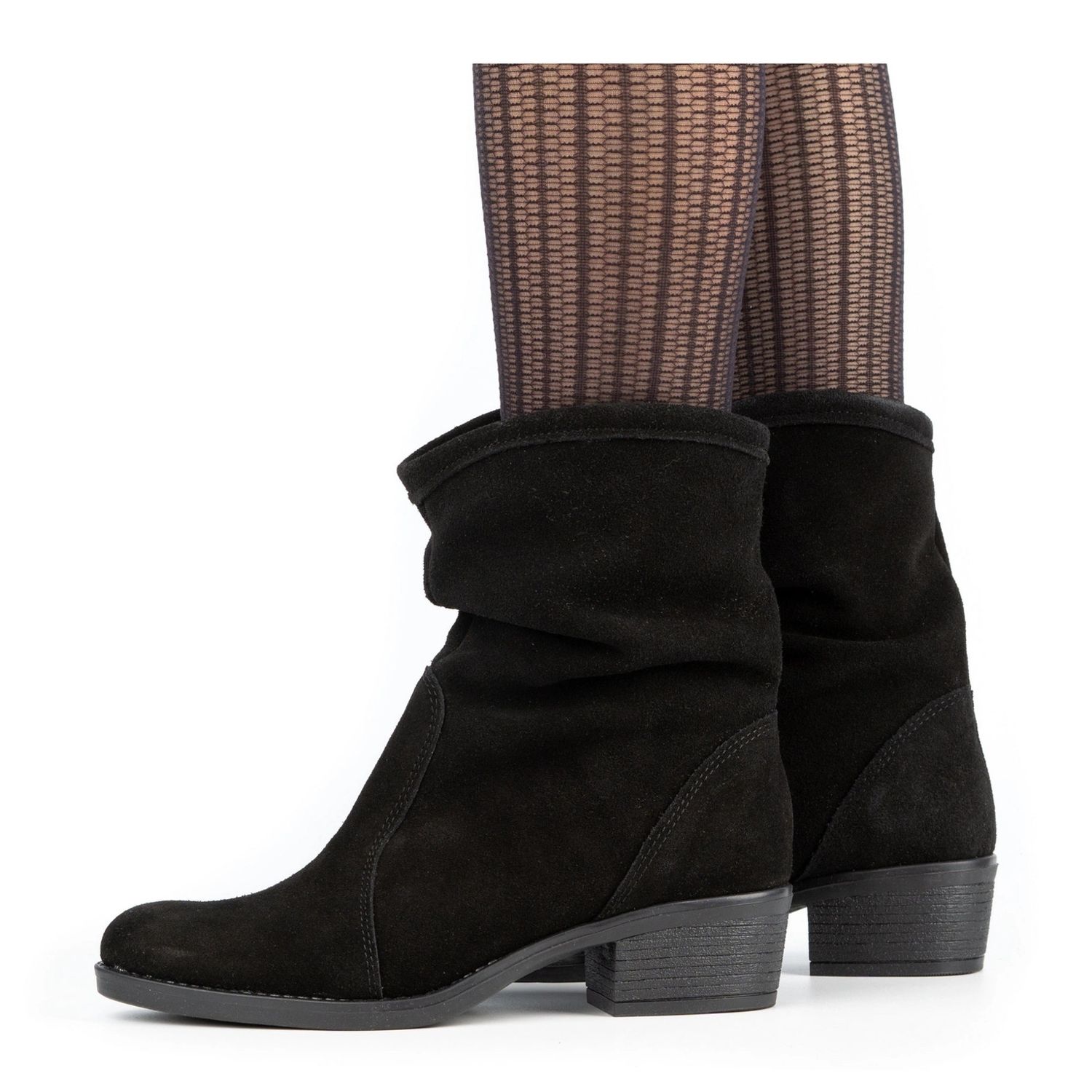 Čizme se dobro miješaju s haljinama, suknjama i opremljenim hlačama - peta optički vitka cijela figura, a klasična crna boja olakšava postavljanje kaputa ili torbe. Model je dostupan i u drugim varijantama boja.