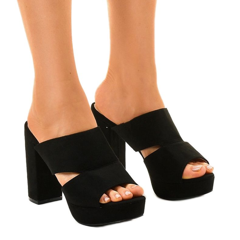 Mule s visokom petom od crne kože 9R55 savršen su izbor za žene koje se žele istaknuti svojim stilom. Ove elegantne, ali ležerne sandale dodat će karakter svakoj odjeći, a njihova izražajna boja čini ih da pristaju gotovo uz sve.