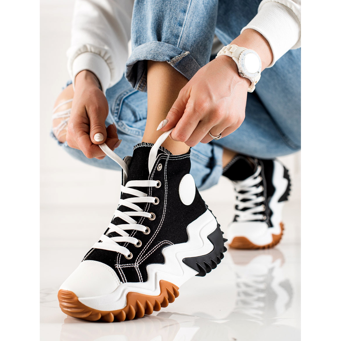 Tenisice TEENDI karakterizira mekana ugrađena peta koja osigurava stabilnost i udobnost nošenja. Potplat od gume s gazištem jamči izvrsno prianjanje, što ih čini idealnim za svakodnevne aktivnosti. Platforma visoka 6 cm dodaje lakoću i čini figuru vitkijom.