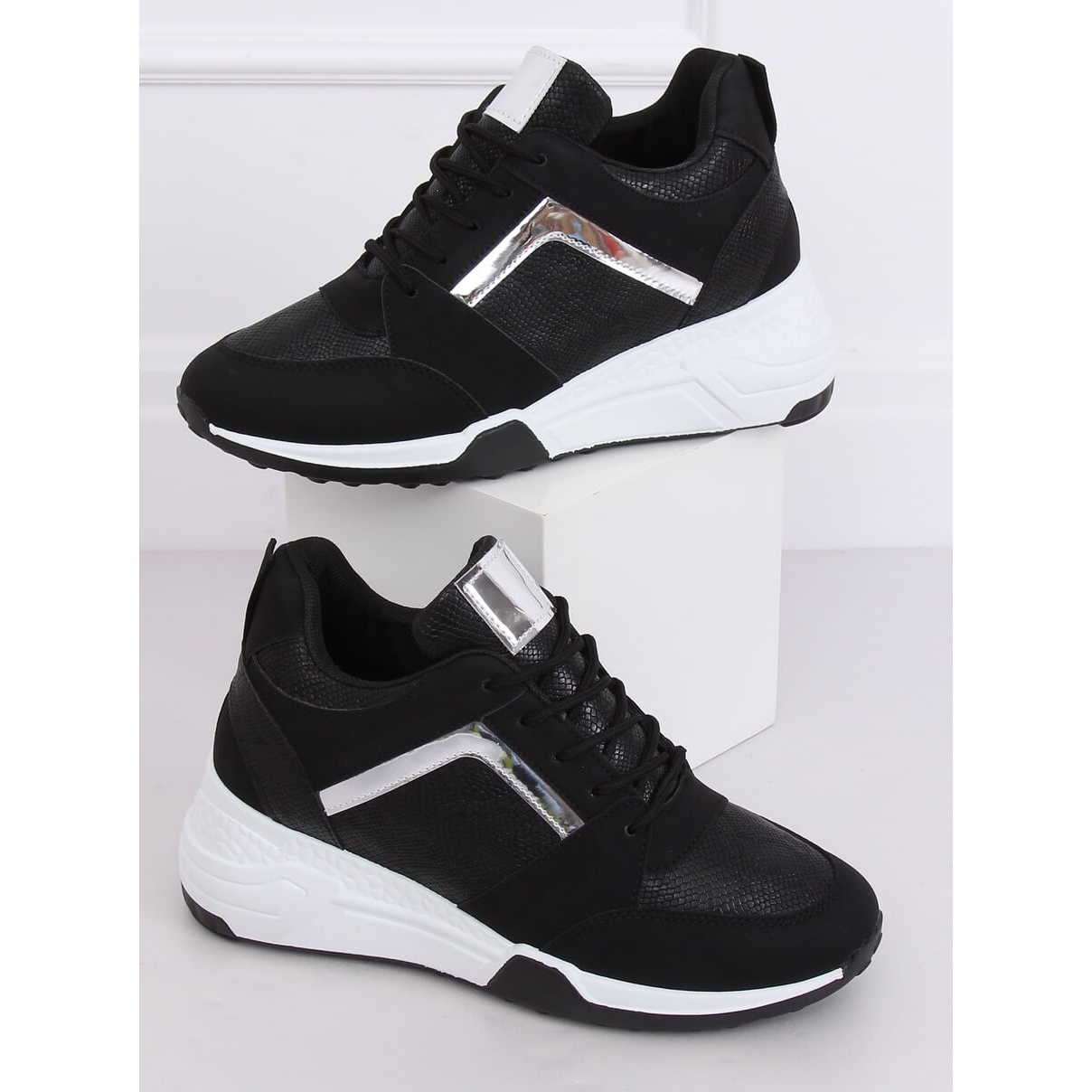 Predstavljamo YL-33 Black žute wedge tenisice - moderan izbor za žene koje cijene stil i udobnost. Ove sportske cipele na vezanje s klinom visine 7 cm spajaju klasičan dizajn s najnovijim trendovima. Odlikuju se neobičnim umetcima koji privlače poglede - motiv zmijske kože i metalik akcenti daju im jedinstven karakter.