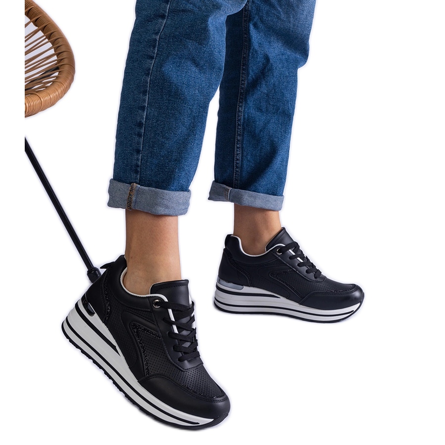 Crne tenisice na platformi ukrašeni sjajem i metalnim umetanjem crna