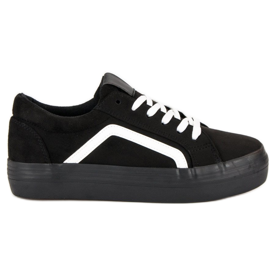 Crne sportske tenisice od brušene kože karakterizira jednostavan, sportski stil koji će dobro funkcionirati u svakom godišnjem dobu. Iako su savršene za toplije dane, lako se mogu uklopiti u zimske ili jesenske komplete - samo ih kombinirajte uz topliju odjeću.