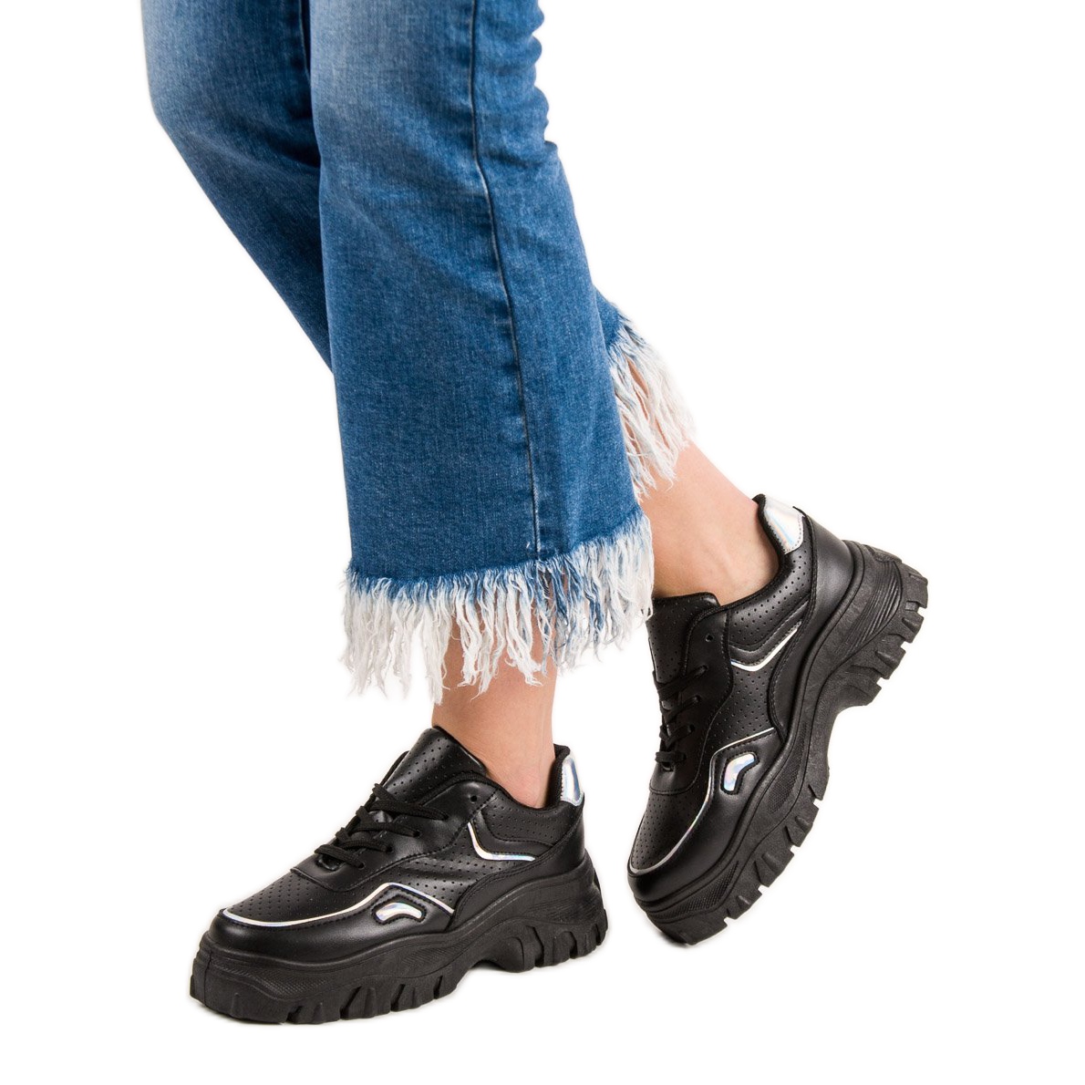 Otkrijte jedinstveni stil i udobnost uz crne ženske tenisice SHELOVET s privlačnim holografskim detaljima. Ove originalne cipele savršeno će obogatiti vašu svakodnevnu garderobu dodajući joj modernistički karakter.