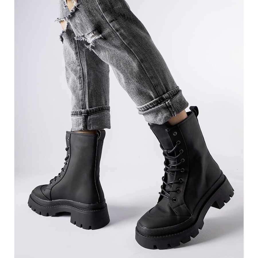 Zatvarač na vezanje jamči da će čizme savršeno pristajati vašem stopalu, nudeći iznimnu udobnost nošenja. Visoki kroj gležnja ne samo da cipelama daje jedinstven izgled, već i dodatno štiti od hladnog jesenskog ili zimskog zraka.