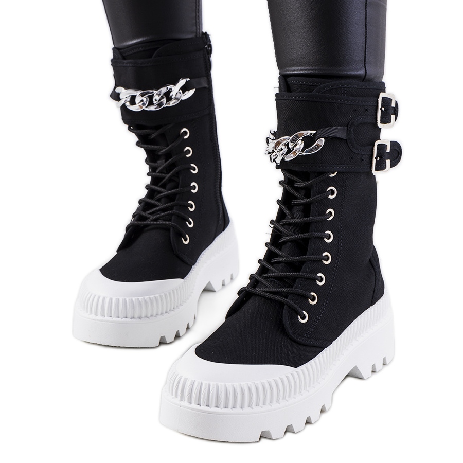 Predstavljamo crne tenisice s lancem, model Taus - savršen izbor za žene koje žele dodati modnu notu svom stajlingu! Ove unikatne tenisice odlikuje se visokim traktorskim potplatom koji osigurava ne samo udobnost nošenja, već i izvrsno prianjanje na raznim podlogama. Stil tenisica u kombinaciji s elegantnim remenom ukrašenim lančićem daje im originalan karakter, čineći ih neodvojivim elementom vaše garderobe.