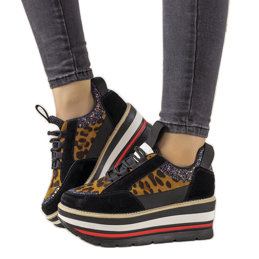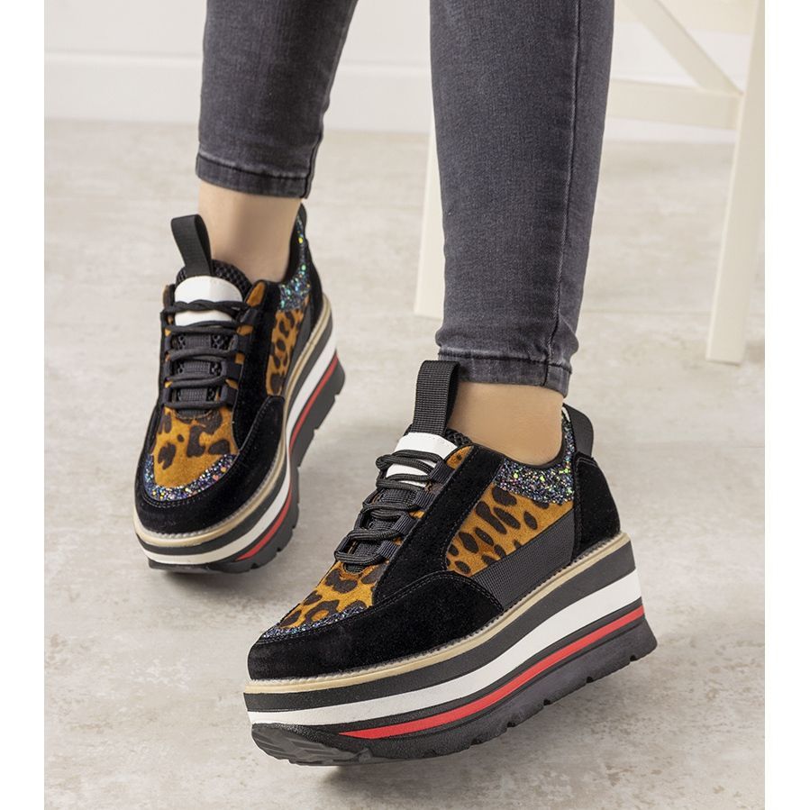 Pojedinosti: Crne tenisice s visokim Debbi potplatima smeđa crna