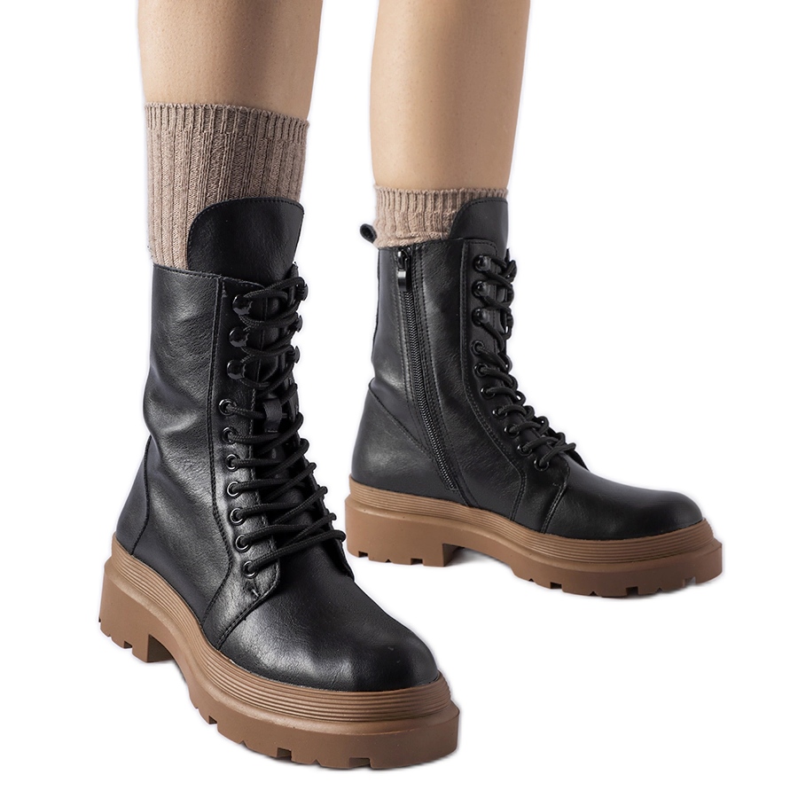 Quenniejevi elegantni i praktični traperi kombinacija su urbanog dizajna i funkcionalnosti za sezonu jesenske -zime. Glatka ekološka kožna gornji dio u klasičnim crnim kontrastima s toplom smeđom gumenom gazom, što cipelama daje karakter i originalnost. Okrugli nožni prst i ravna, 4 cm pete osiguravaju utjehu tijekom nošenja dana, a zagrijavanje će vam stopala toplo čak i hladnijim danima.