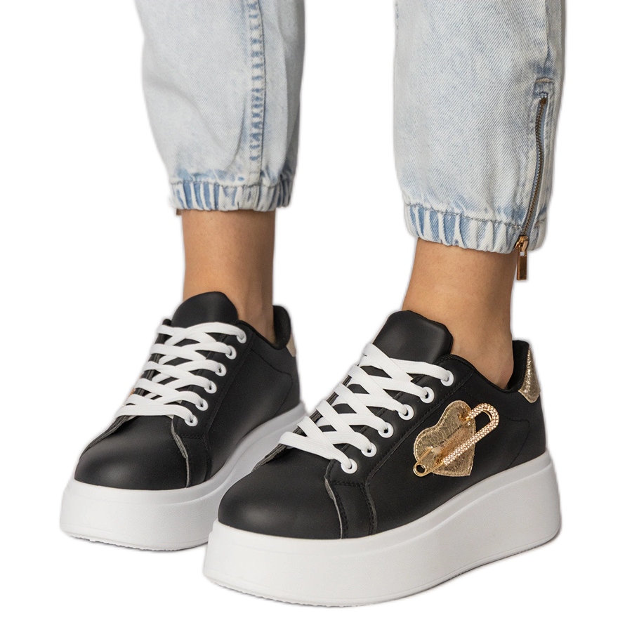 Pojedinosti: Crne tenisice sa srcem i sigurnosnom pin lerisolom crna