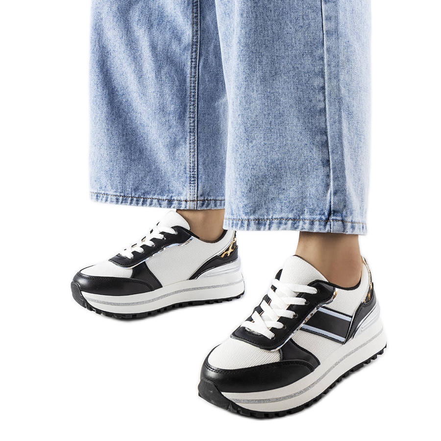 Bijele tenisice s crnim svjetlucavim umetcima Lang (model AD-722)-stil i udobnost za ljeto