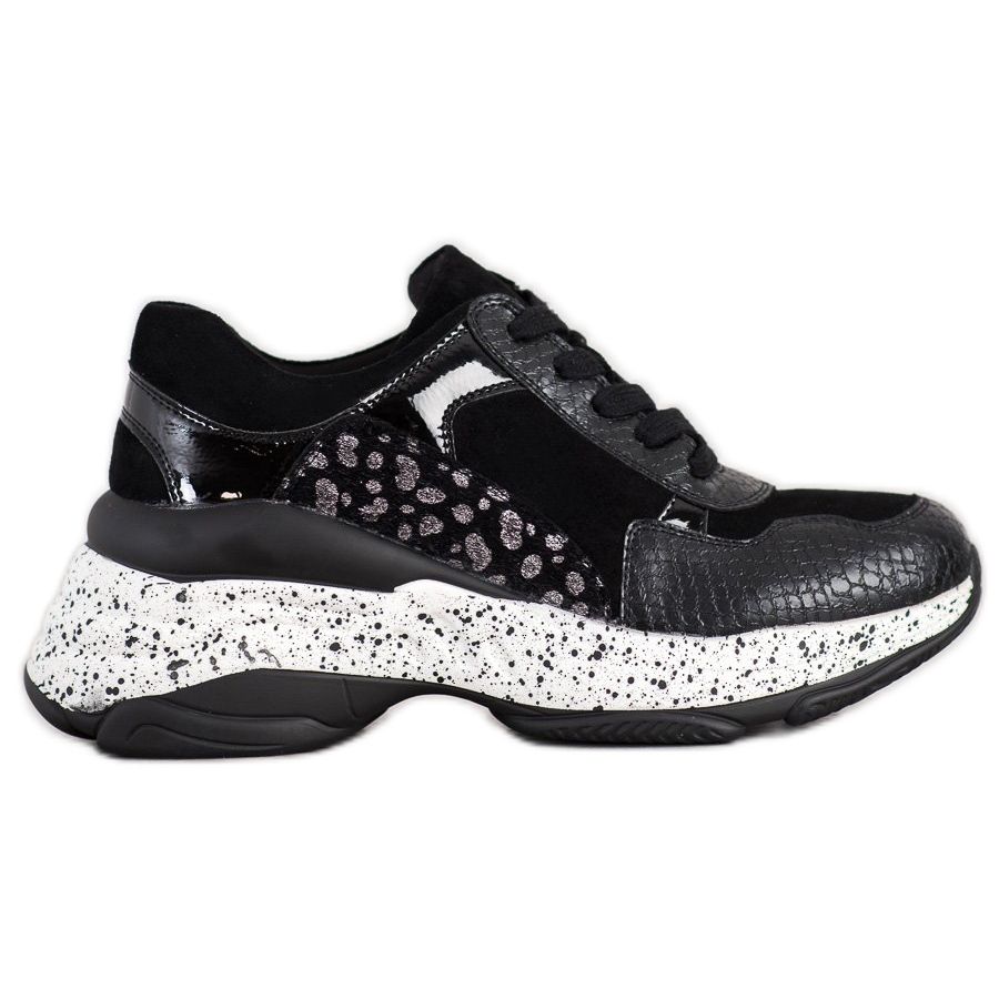 Crne SDS tenisice savršen su izbor za svako godišnje doba - kako za hladnije dane jeseni i zime, tako i za proljeće i ljeto. Njihov minimalistički, životinjski uzorak daje im moderan karakter, a niska visina i platforma od 7 cm čine ih udobnima i lakima za nošenje tijekom cijelog dana.