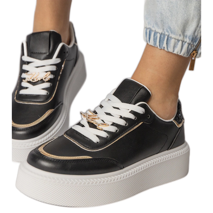 Crne tenisice ukrašene sjajem i cirkonima crna
