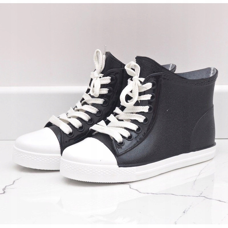 Ove unikatne wellington tenisice savršen su izbor za žene koje traže praktičnu, au isto vrijeme elegantnu obuću za loše vrijeme. Crne visoke tenisice dizajnirane su tako da izgledom imitiraju klasične tenisice, no zahvaljujući kvalitetnoj gumi pružaju izvrsnu zaštitu od kiše i vlage.