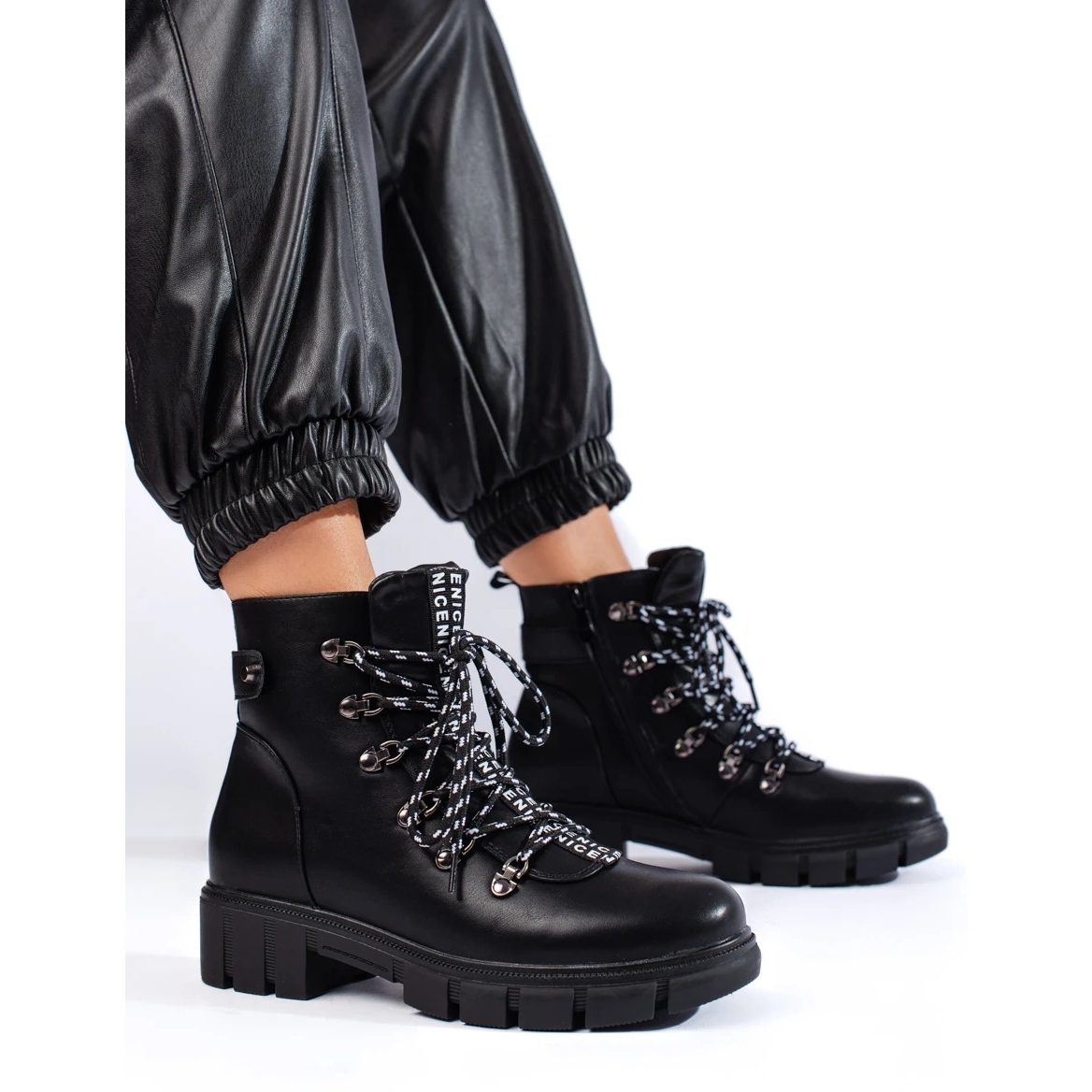 Elegantni, crni Vinceza radnici svakodnevno kombiniraju urbani stil s udobnošću. Izrađene od organske kože, s izolacijom i ugodnom uloškom "Obuća", radit će na hladnijim danima. Stabilan potplat s gazimanjem i praktičnim zatvaračem i vezanje garantira udobnost i određeni korak.