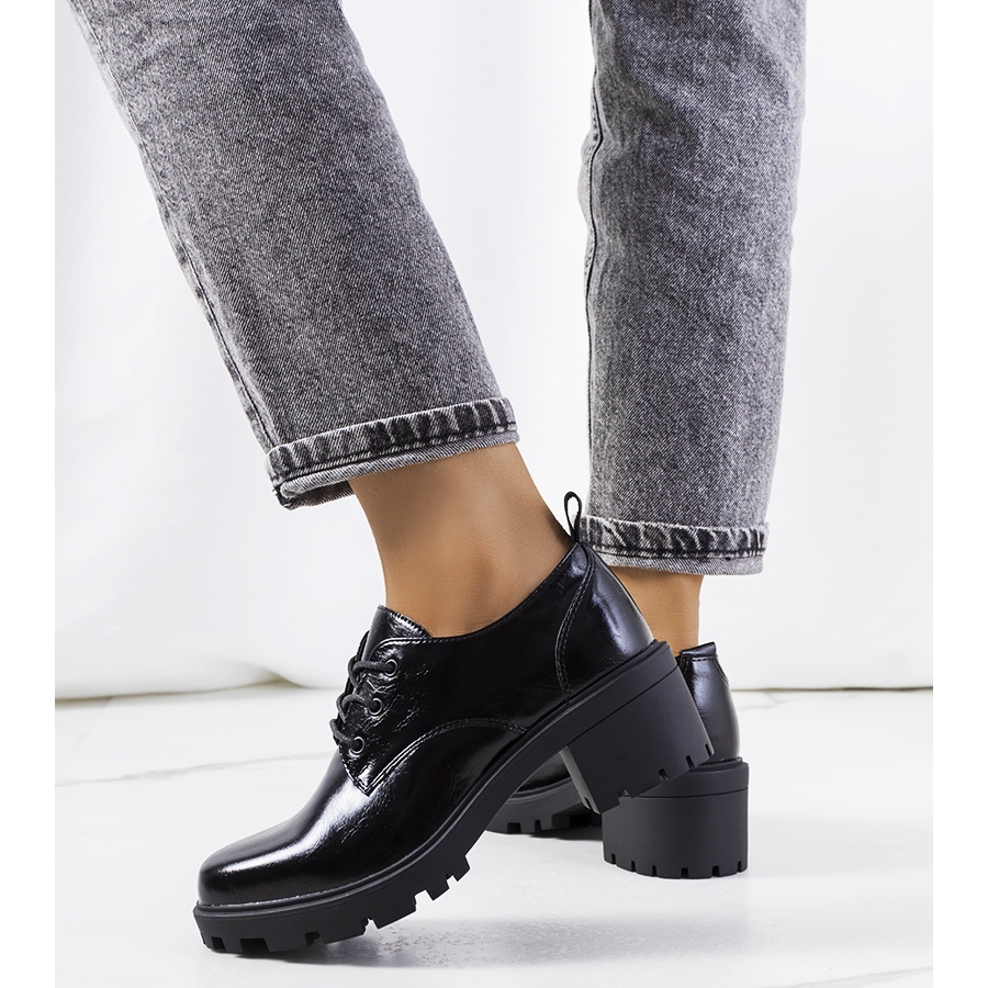 Visoki trapper potplat i debeli stup visine 5,5 cm dodaju cipelama karakter i stabilnost, što ih čini savršenim kako za svakodnevnu upotrebu tako i za posebne prilike. Zahvaljujući vezicama, cipele se mogu savršeno prilagoditi stopalu, što povećava udobnost pri hodu. Umetak od prirodne kože osigurava pravilnu ventilaciju i udobnost nošenja. Imajte na umu da je numeriranje pretjerano pa se preporučuje odabir manje veličine.
