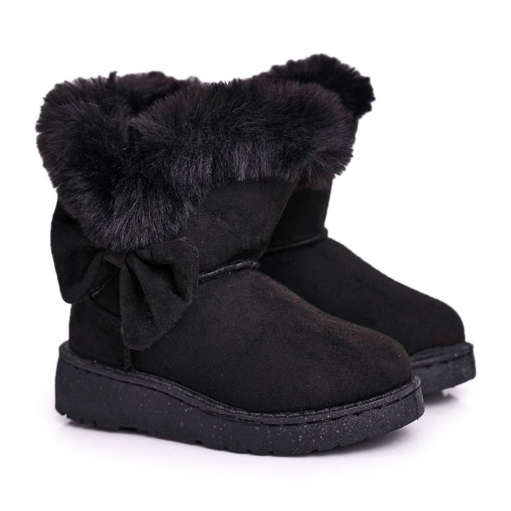Pojedinosti: FRROCK Crne Vella dječje čizme za snijeg s krznenom mašnom crna