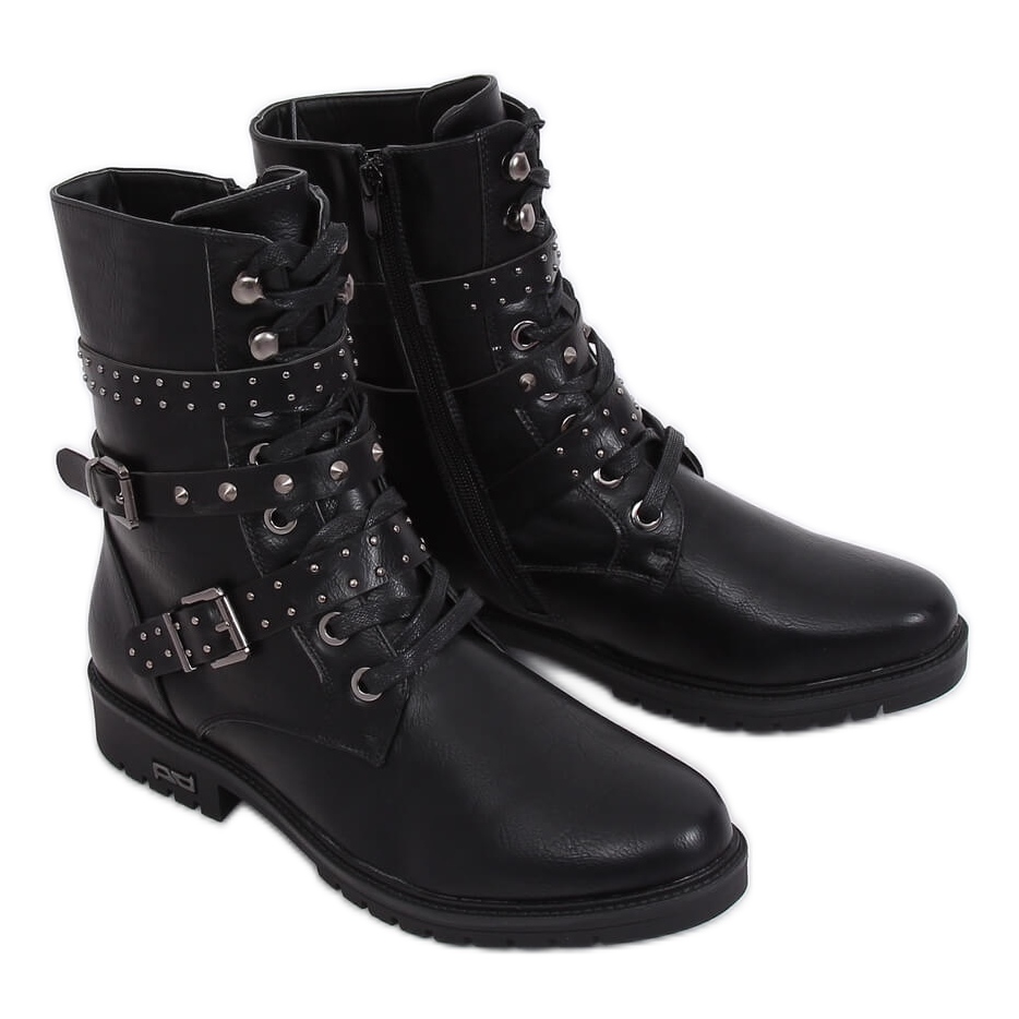 Crne vojne čizme 1952-11 savršen su izbor za žene koje cijene stil i udobnost svaki dan. Ove elegantne radničke čizme u bezvremenskoj crnoj boji zasigurno će privući pažnju ljubitelja rock naglaska. Opremljeni brojnim nitnama, dodaju karakter svakom stajlingu.