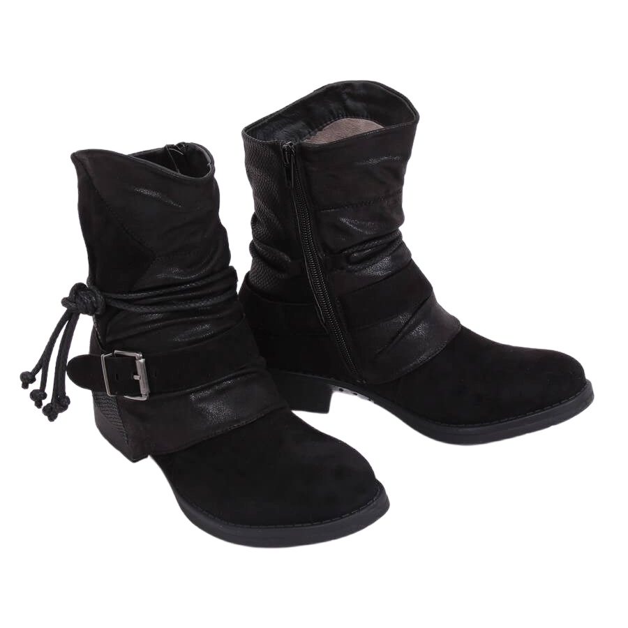 Crne vojne čizme 201802-11B Black idealan su prijedlog za žene koje ne cijene samo moderan izgled, već i udobnost nošenja. Ove čizme odlikuje vojni stil, što ih čini savršenom nadopunom ležernog i vojnog stila.