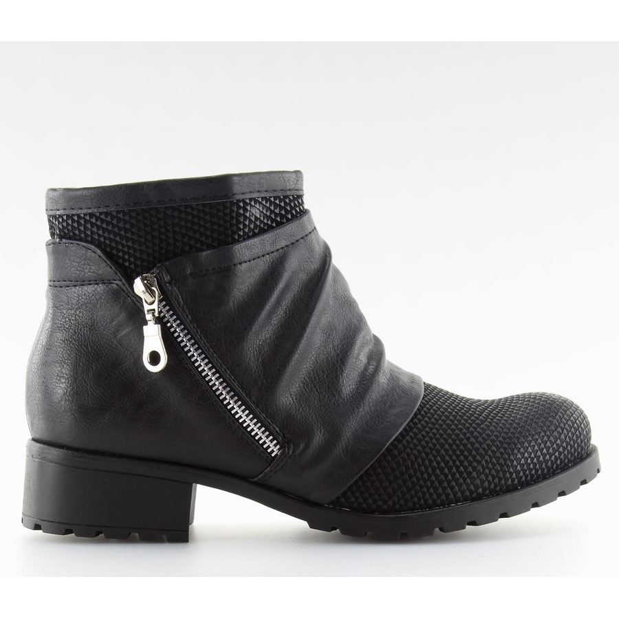 Crne vojničke čizme 669 savršen su izbor za žene koje cijene stil i udobnost. Izrađene od visokokvalitetne ekološke kože, ove gležnjače spajaju moderan dizajn s funkcionalnošću. Originalni kroj sa strelicom u prednjem dijelu gornjeg dijela daje im jedinstven karakter, a raznolikost tekstura - glatka zrna i reljefna geometrija - izdvaja ih od ostalih modela.