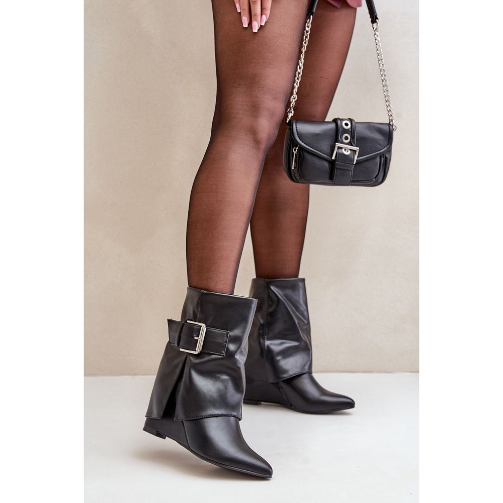 Model karakterizira inovativni dizajn - šiljasti nožni prsti dodaju eleganciju, a velika kopča na gornjem dijelu je izrazit naglasak koji privlači oko. Zahvaljujući umetanju i dodatnom pričvršćivaču patentnih zatvarača, stavljanje čizama je brzo i ugodno, a savršeno uklapanje jamči u udobnost.