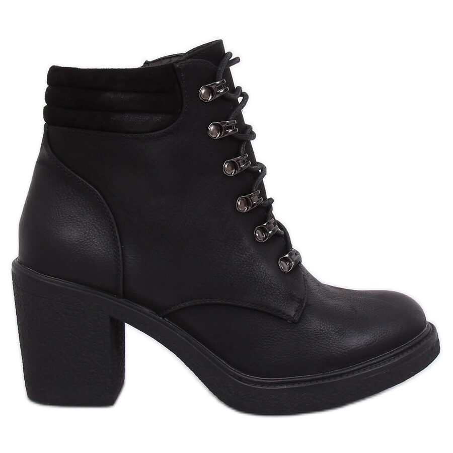 Crne VQ-18 Crne gležnjače na vezanje savršen su izbor za žene koje žele spojiti udobnost i eleganciju. Ove moderne Timber čizme odlikuje stabilna peta visine 7,5 cm koja osigurava udobno svakodnevno nošenje. Originalno vezivanje inspirirano klasičnim trekking cipelama daje im karakter, a dodatni zatvarač olakšava obuvanje.